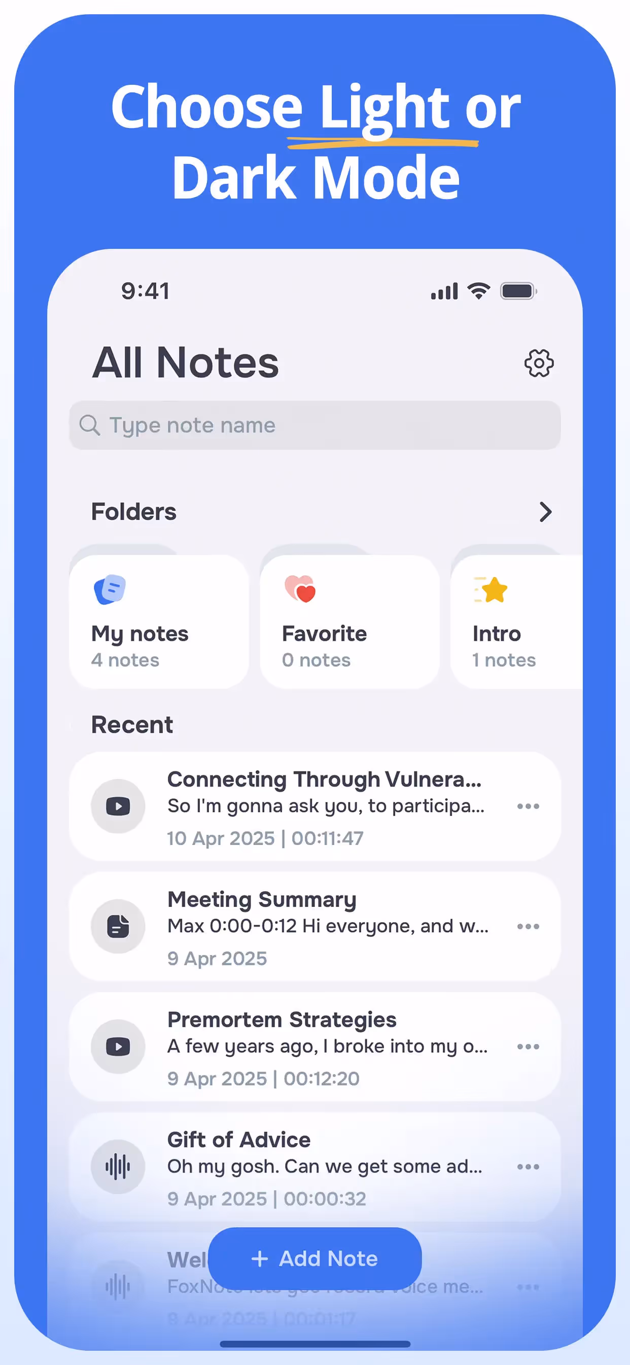 AI Note Taker - FoxNote is a Productivity app developed by Faliane Ltd.. Priced at Free, it currently holds a rating of 4.6/5 on the App Store. Browse through its curated screenshots for App Store Optimization (ASO) inspiration, UI design ideas, and to discover effective ways to present a Productivity app visually.