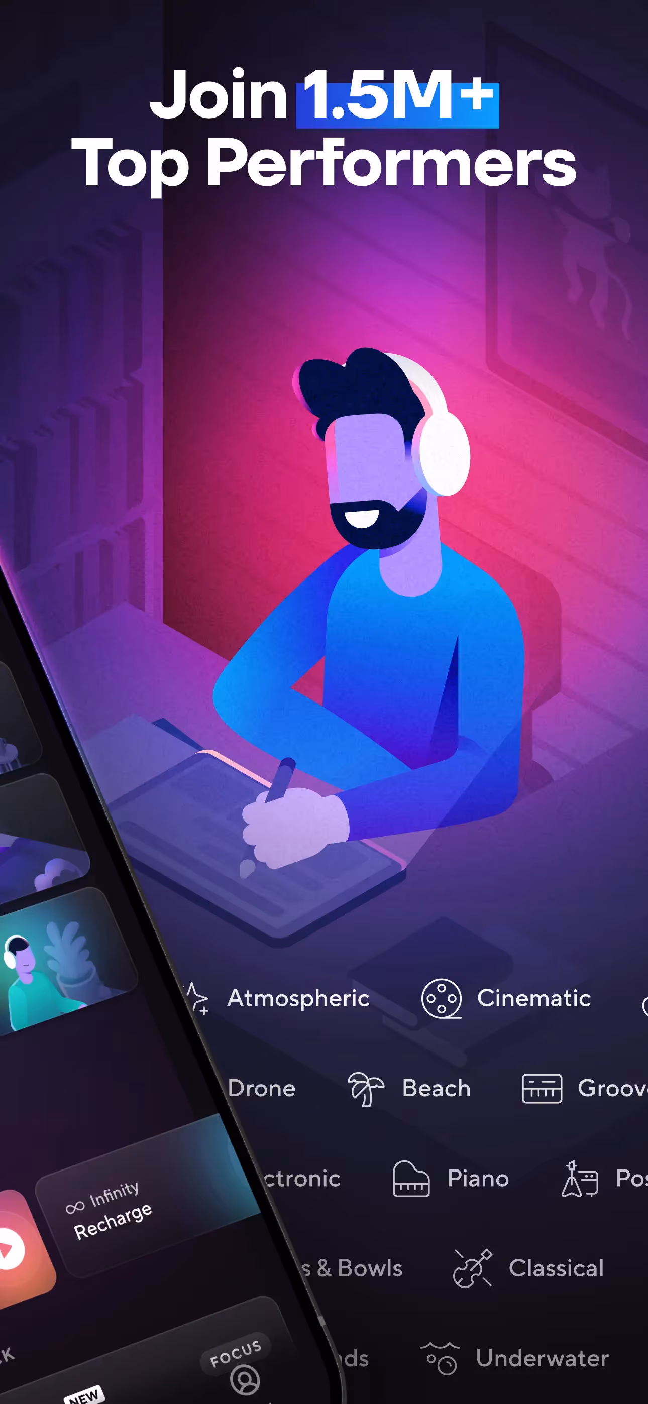 Brain.fm: Focus & Sleep Music is a Productivity app developed by . Priced at Free, it currently holds a rating of 4.5/5 on the App Store. Browse through its curated screenshots for App Store Optimization (ASO) inspiration, UI design ideas, and to discover effective ways to present a Productivity app visually.