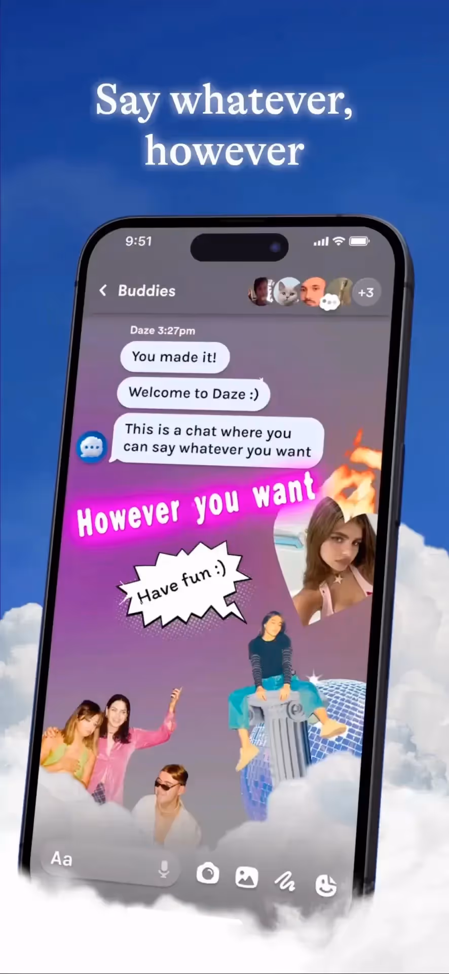 Daze - Freeform Chat is a Social Networking app developed by Marble Media Inc. Priced at Free, it currently holds a rating of NA/5 on the App Store. Browse through its curated screenshots for App Store Optimization (ASO) inspiration, UI design ideas, and to discover effective ways to present a Social Networking app visually.