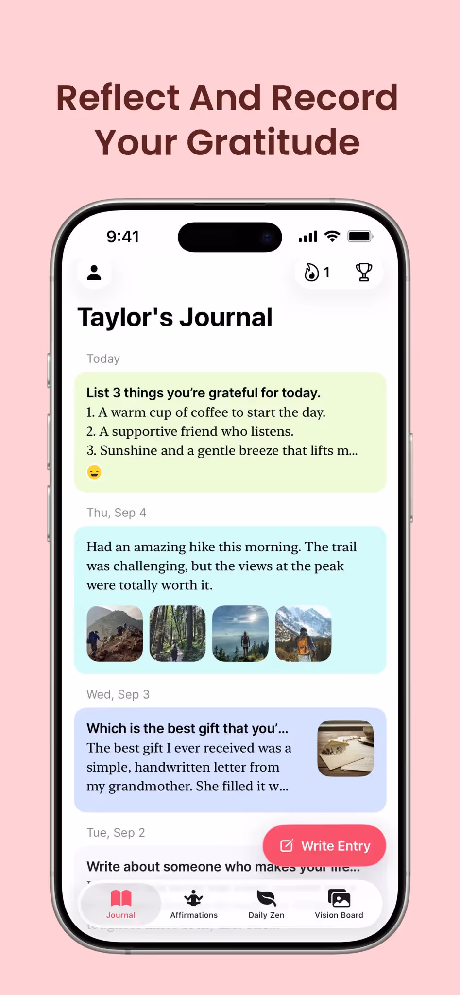 Gratitude: Self-Care Journal is a Health & Fitness app developed by . Priced at Free, it currently holds a rating of 4.9/5 on the App Store. Browse through its curated screenshots for App Store Optimization (ASO) inspiration, UI design ideas, and to discover effective ways to present a Health & Fitness app visually.