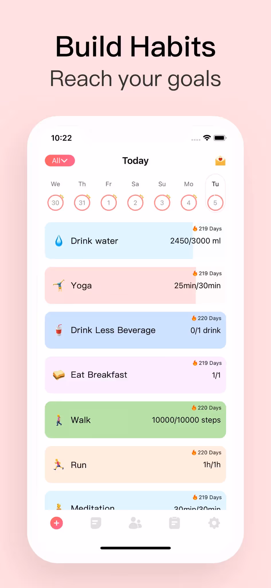 Habit Tracker is a Productivity app developed by . Priced at Free, it currently holds a rating of 4.8/5 on the App Store. Browse through its curated screenshots for App Store Optimization (ASO) inspiration, UI design ideas, and to discover effective ways to present a Productivity app visually.