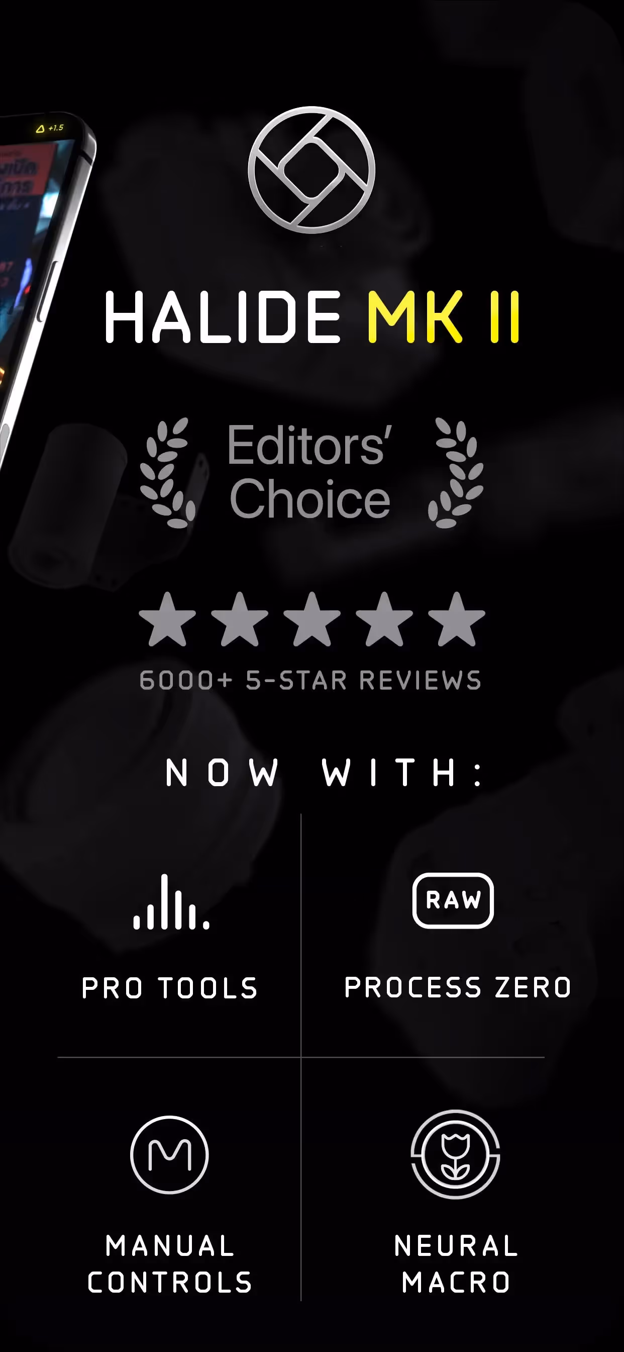 Halide Mark II - Pro Camera is a Photo & Video app developed by Lux Optics Incorporated. Priced at Free, it currently holds a rating of 4.4/5 on the App Store. Browse through its curated screenshots for App Store Optimization (ASO) inspiration, UI design ideas, and to discover effective ways to present a Photo & Video app visually.
