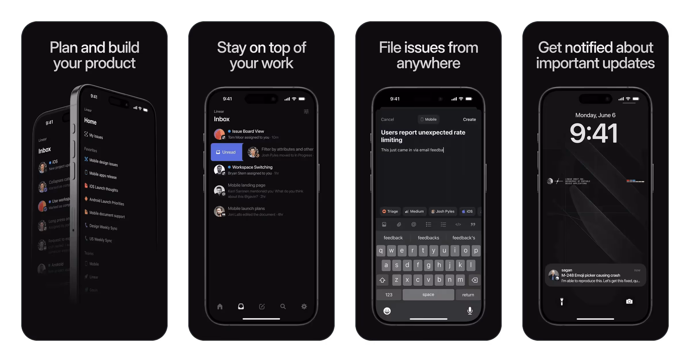 Linear Mobile is a Business app developed by Linear. Priced at Free, it currently holds a rating of 4.9/5 on the App Store. Browse through its curated screenshots for App Store Optimization (ASO) inspiration, UI design ideas, and to discover effective ways to present a Business app visually.