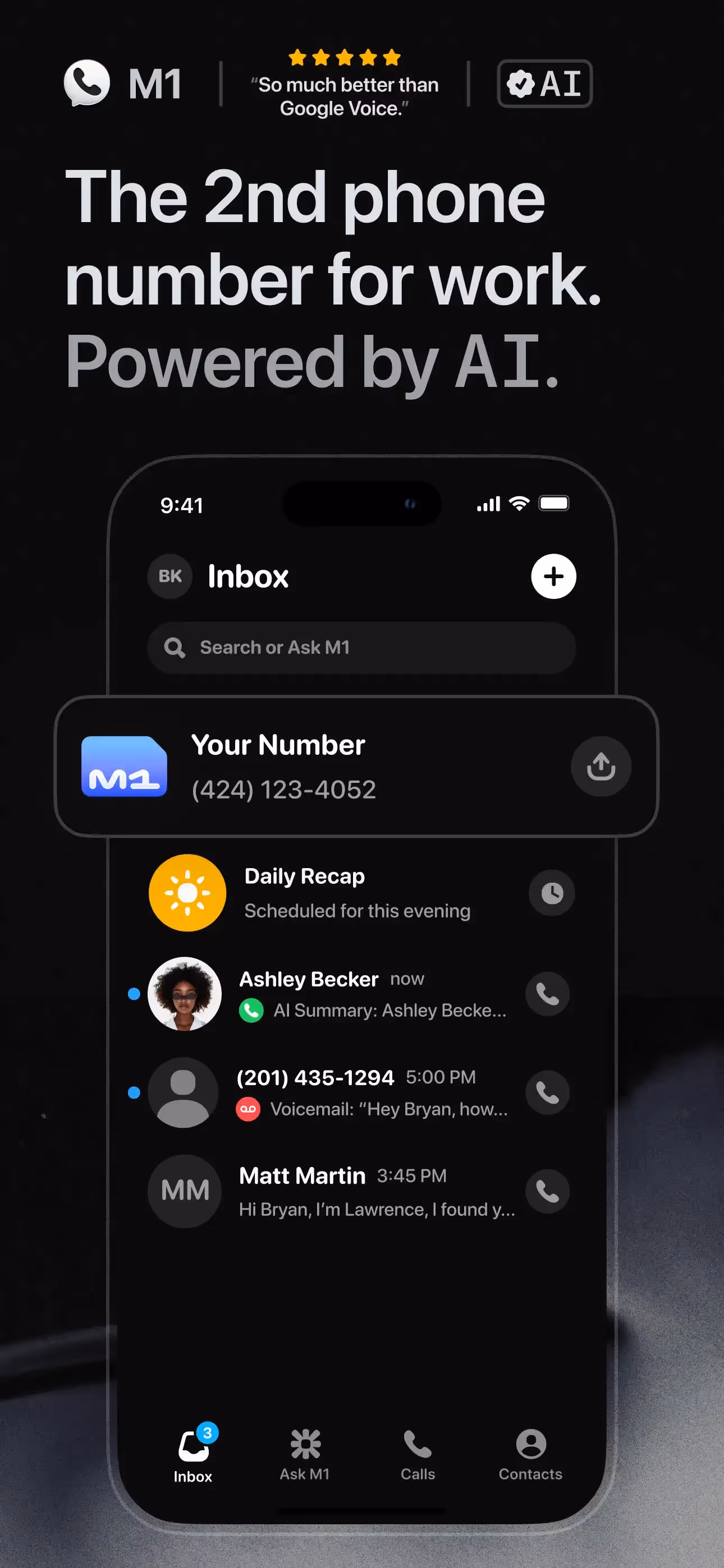 M1: AI Business Phone Number is a Productivity app developed by Heart Hands Inc.. Priced at Free, it currently holds a rating of 4.7/5 on the App Store. Browse through its curated screenshots for App Store Optimization (ASO) inspiration, UI design ideas, and to discover effective ways to present a Productivity app visually.