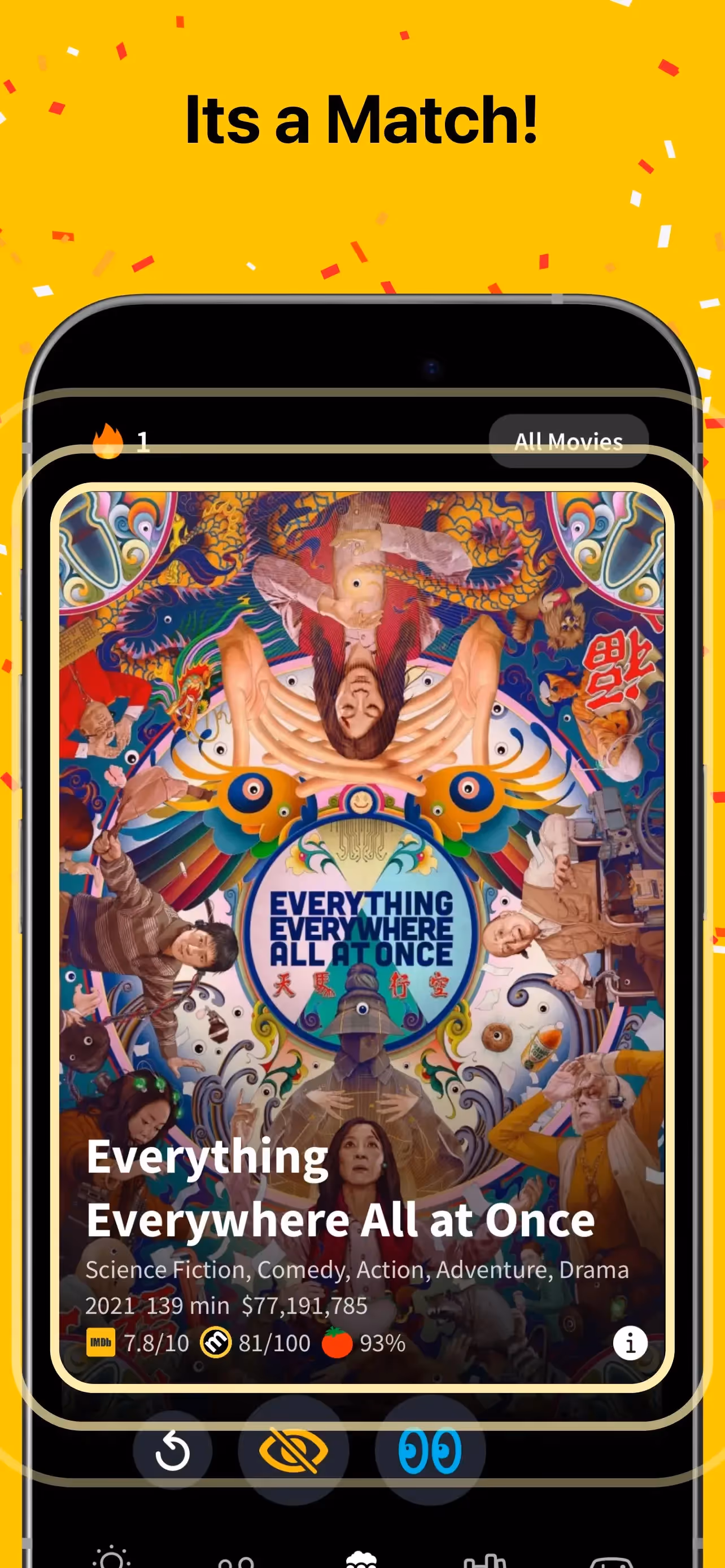 Movie Night - Swipe & Watch is a Entertainment app developed by MWM. Priced at Free, it currently holds a rating of 4.4/5 on the App Store. Browse through its curated screenshots for App Store Optimization (ASO) inspiration, UI design ideas, and to discover effective ways to present a Entertainment app visually.