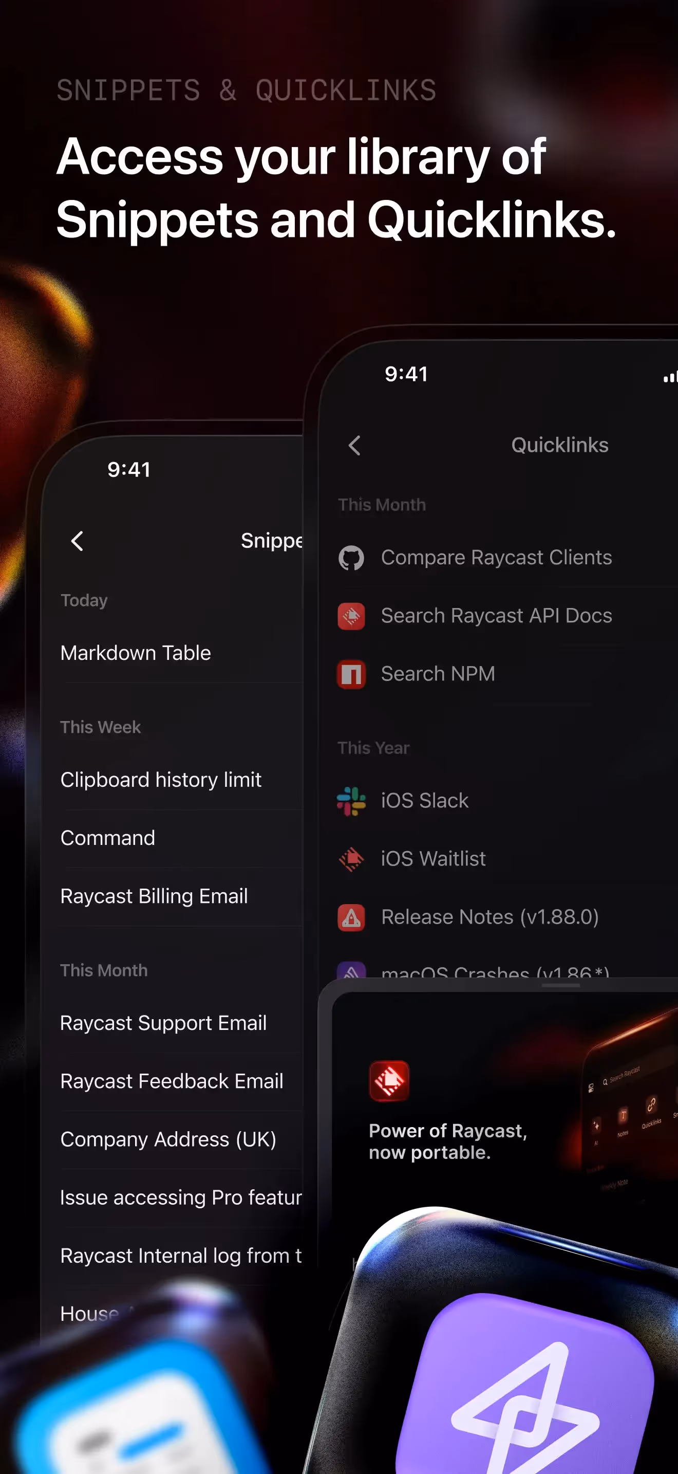 Raycast: AI, Notes and more is a Productivity app developed by Raycast Technologies. Priced at Free, it currently holds a rating of 4.5/5 on the App Store. Browse through its curated screenshots for App Store Optimization (ASO) inspiration, UI design ideas, and to discover effective ways to present a Productivity app visually.