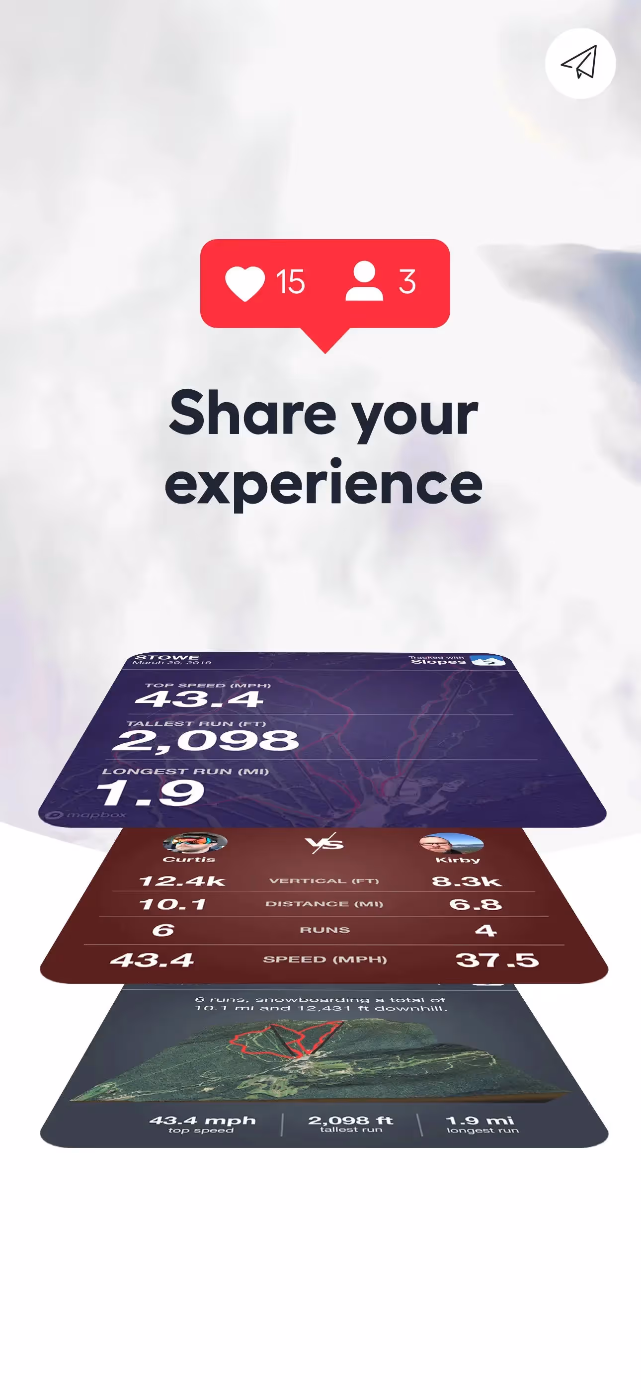 Slopes: Ski & Snowboard is a Sports app developed by . Priced at Free, it currently holds a rating of 4.9/5 on the App Store. Browse through its curated screenshots for App Store Optimization (ASO) inspiration, UI design ideas, and to discover effective ways to present a Sports app visually.