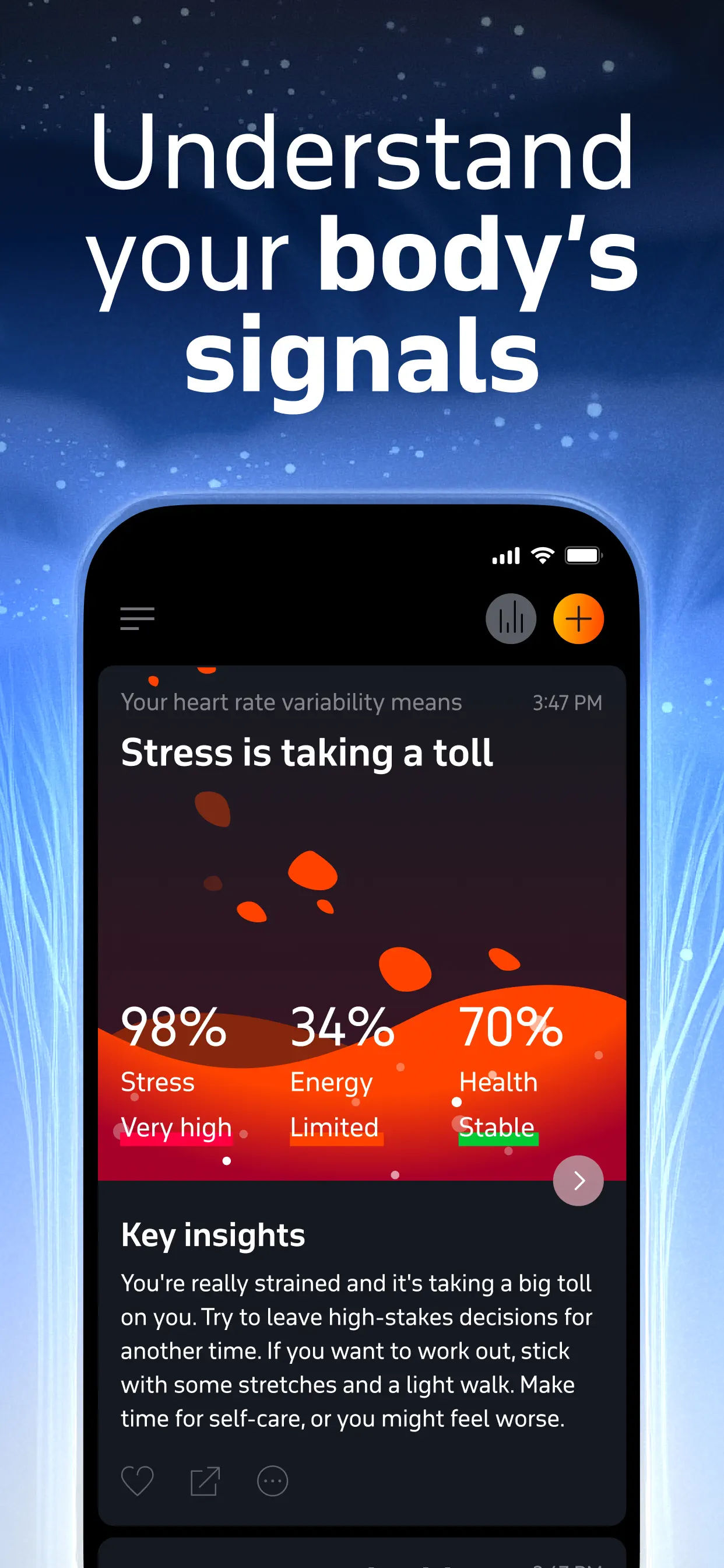Welltory: Heart Rate Monitor is a Health & Fitness app developed by . Priced at Free, it currently holds a rating of 4.8/5 on the App Store. Browse through its curated screenshots for App Store Optimization (ASO) inspiration, UI design ideas, and to discover effective ways to present a Health & Fitness app visually.